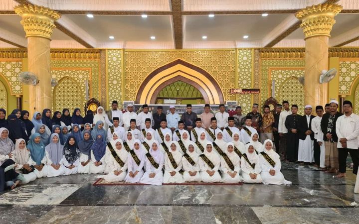Komparatif.ID, Tapak Tuan– 27 santri Madrasah Ulumul Qur’an (MUQ) Aceh Selatan yang terdiri dari 18 perempuan dan 9 laki-laki, berhasil menyelesaikan hafalan 30 Juz di Masjid Agung Istiqomah, Tapaktuan, Sabtu (14/12/2024).