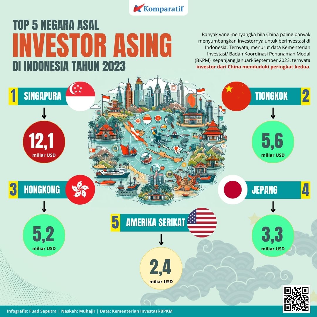 Komparatif.ID, Banda Aceh— Banyak yang menyangka bila China paling banyak menyumbangkan investornya untuk berinvestasi di Indonesia. Ternyata, menurut data Kementerian Investasi/ Badan Koordinasi Penanaman Modal (BKPM), sepanjang Januari-September 2023, ternyata investor dari China menduduki peringkat kedua.