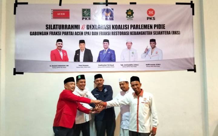 Koalisi ini diberi nama Koalisi Parlemen Pidie, menguasai 23 dari total 40 kursi di DPRK Pidie. “Koalisi ini terdiri dari dua fraksi, yakni Fraksi Partai Aceh (PA) dan Fraksi Gabungan Restorasi Kebangkitan Sejahtera (RKS),” terang Ketua DPW Partai Aceh Pidie, Sarjani Abdullah usai deklarasi, Kamis (22/8/2024).