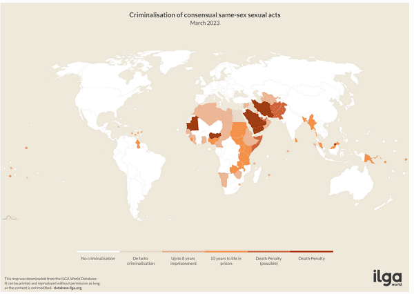 64 negara di dunia melihat lesbian, gay, biseksual,transgender, dan interseks sebagai perbuatan tercela dan tidak boleh berkembang. Negara-negara itu anti LGBTQ. Bahkan di Brunai Darussalam, Iran,Mauritania, Nigeria, Arab Saudi, dan Yaman, para pelaku disorientasi seksual tersebut dihukum mati.