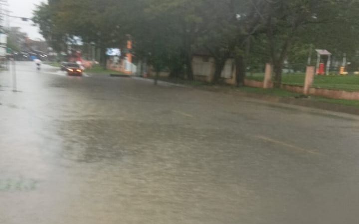 Kondisi banjir di depan Rumah Sakit Umum Cut Meutia, Kecamatan Blang Mangat, Lhokseumawe, Rabu (27/11/2025). Foto: Komparatif.ID/Alfan Rayhan Pane.