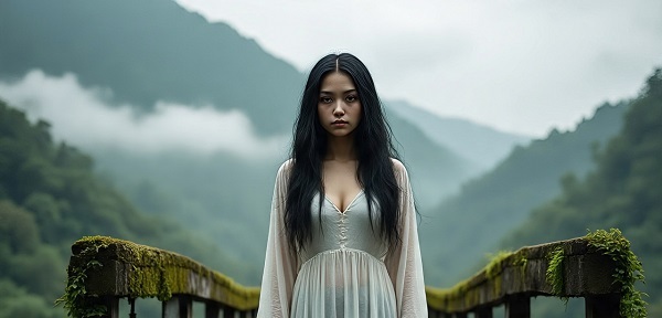Ketika sedang menyetir, tiba-tiba melintas sesosok perempuan dengan wajah penuh luka. Si pria mengenali sosok itu. dia terkejut dan membanting setir ke kanan. Mobil Kijang petak yang dia kendarai terpental ke jurang. Dia dan kedua orangtuanya tewas.