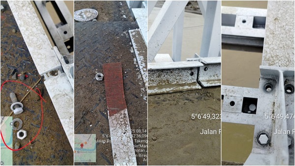 Tapi, pada Minggu pagi, 28 Desember 2025, kekhawatiran muncul lagi. Kegundahan itu muncul setelah ditemukan fakta bahwa sejumlah baut yang dipasang di jembatan itu, telah lepas dari tempatnya. Sebagian baut yang telah dilepas, tergeletak di atas badan jembatan.