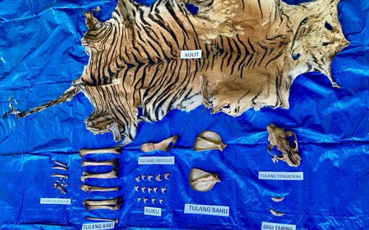 “Pada saat itu kami hanya berhasil mengamankan barang bukti berupa selembar kulit Harimau Sumatera, 16 kuku, dua taring, satu tulang jari, dua tulang pinggul, satu tulang sendi, satu tulang kepala, dan dua unit handphone,” kata Direktur Reserse Kriminal Khusus Polda Aceh, Kombes Zulhir Destrian di Banda Aceh, Rabu (8/10/2025).