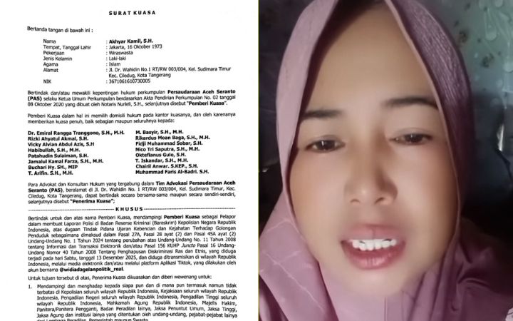 Laporkan tersebut dilayangkan Ketua Umum Persaudaraan Aceh Seranto (PAS), Akhyar Kamil, pada Senin (21/12/2025).