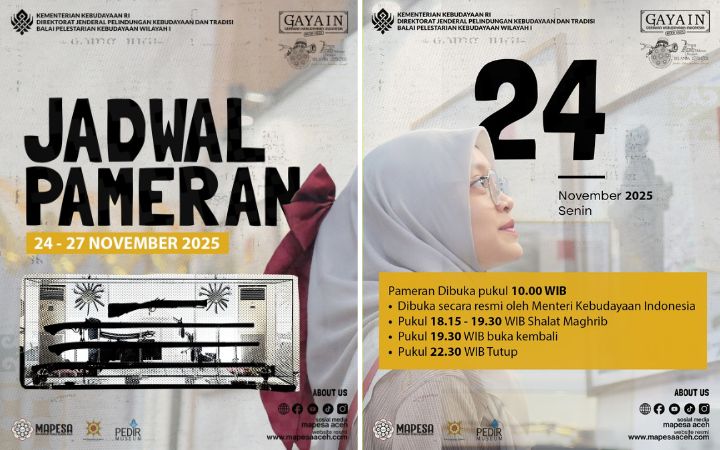 “Pameran ini menghadirkan data-data ilmiah bagaimana Aceh melihat dirinya sendiri. Bukan melulu dari mata-mata Belanda, para penjajah, atau yang mereka tebal yang iri terhadap Aceh,” ujarnya melalui medsos Mapesa, Senin (24/11/2025).