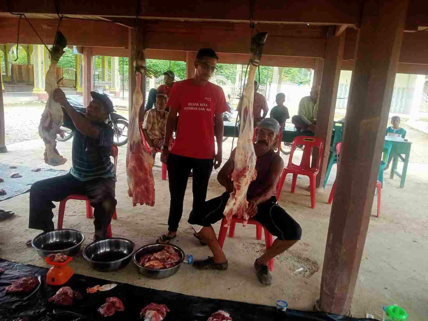 Pembagian daging makmeugang yang dilakukan pada makmeugang ubeut, Selasa (27/6/2023) sebagai bentuk kepedulian menyambut Iduladha 1444 Hijriah.Â