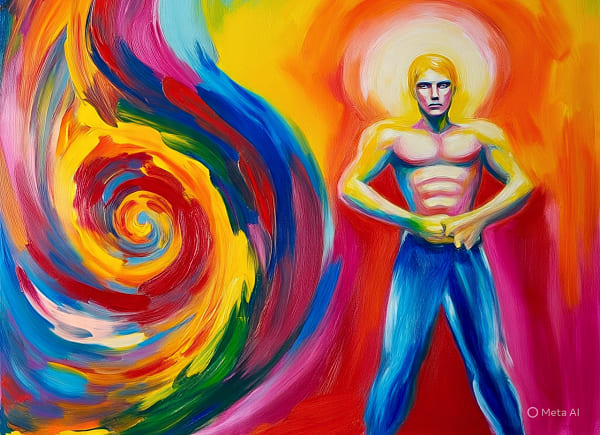 Lukisan abstrak tentang hukum kekuasaan. Foto: Meta AI.