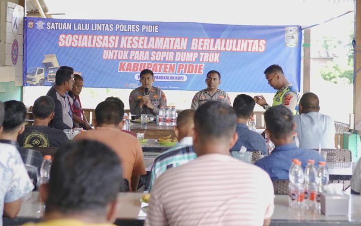 Komparatif.ID, Sigli— Polres Pidie melaksanakan sosialisasi etika berlalu lintas seiring maraknya pelanggaran lalu lintas yang disebabkan supir dump truk, Jumat (12/7/2024).