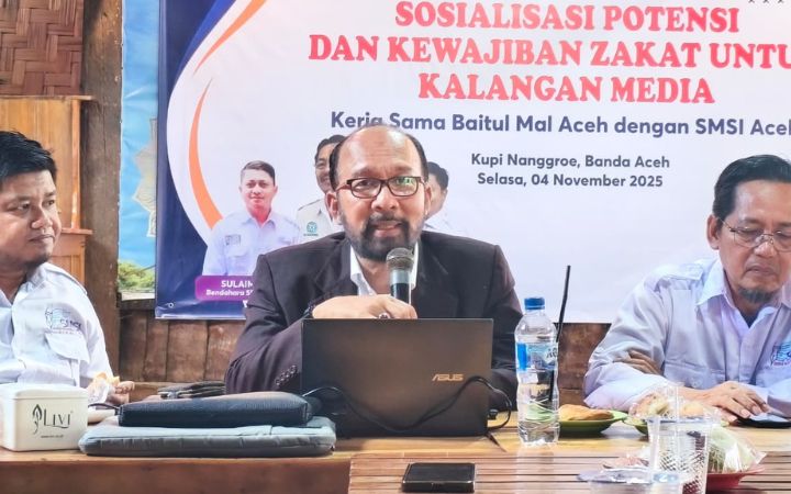 Hal itu ia ungkapkan pada sosialisasi potensi dan kewajiban zakat untuk kalangan media yang digelar Baitul Mal Aceh bekerjasama dengan SMSI Aceh di Kopi Nanggroe, Selasa (4/11/2025).
