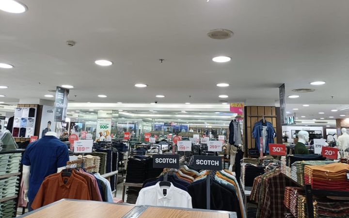 Pada bagian penjualan pakaian laki-laki dan perempuan, lebih ramai pramuniaga ketimbang pembeli. Pekerja lebih banyak berdiri bengong, atau sekadar bicara pelan dengan sesama pekerja. Nyaris tidak ada pembeli yang dapat dilayani.
