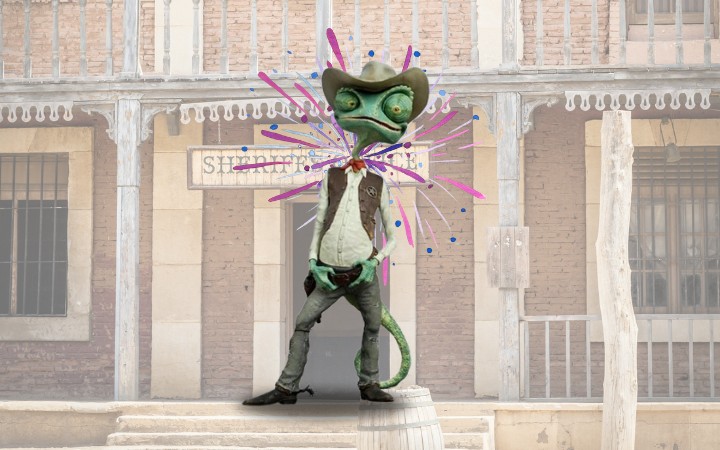 Karakter Rango. Foto: Paramount, Ilustrasi: Komparatif.ID.