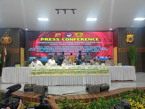 Dalam konferensi pers di Mapolda Aceh, Senin (10/10/2022) Kapolda Aceh Irjen Pol Ahmad Haydar mengatakan penangkapan terhadap F dilakukan dalam operasi bersama antara Polda Aceh—Ditresnarkoba dan Ditpolair, Direktorat Tindak Pidana Narkoba Bareskrim Polri, Direktorat Interdiksi Narkotika DJBC Kanwil Aceh, DJBC Kepri, dan lainnya.