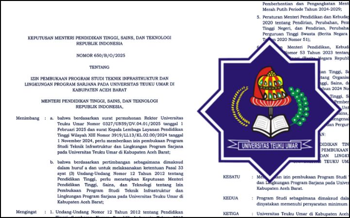 Komparatif.ID, Meulaboh— Universitas Teuku Umar (UTU) Meulaboh resmi mengantongi izin pembukaan program studi baru Teknik Infrastruktur dan Lingkungan. Program ini jadi pertama dan satu-satunya di Pulau Sumatera yang memiliki nomenklatur tersebut.